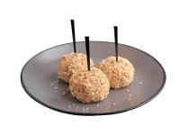 Состав: сыр галланд., крабовые палочки, яйцо куриное, майонез, кунжут черный.Изысканное сочетание нежного сыра и сочного крабового мяса в идеальной форме шарика. В основе — сыр, который придает шарику идеальную текстуру и мягкий, узнаваемый вкус. Секрет нежности — в консистенции, достигаемой за счет добавления крабового мяса, яиц и классического майонеза.
