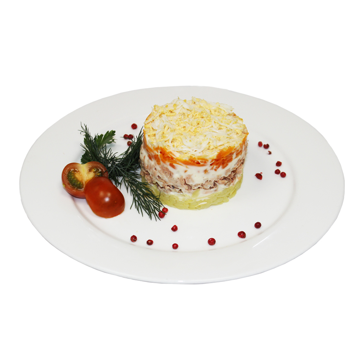 Состав: картофель свежий, горбуша г/к, морковь свежая, яйцо куриное, майонез, соль пищевая, перец черный молотый.