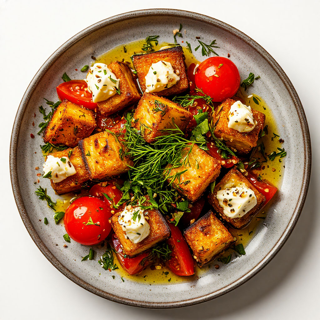 Салат из баклажан со сливочным сыром и кунжутной заправкой
